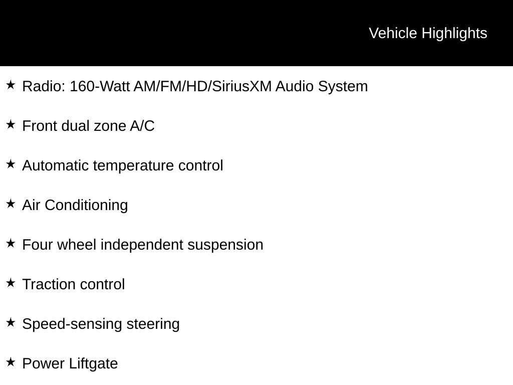 - Radio: 160-Watt AM/FM/HD/SiriusXM Audio System