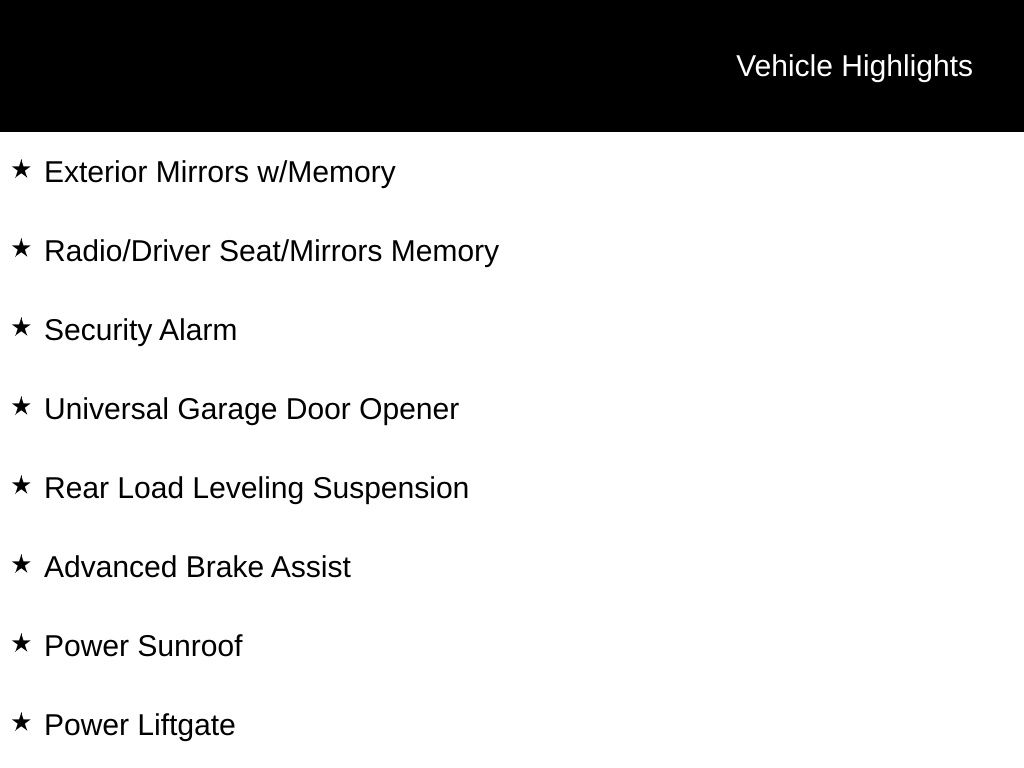 - Power 8-Way Driver Memory 6-Way Passenger Seats