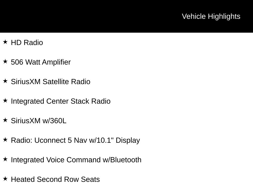 - Radio: Uconnect 5 Nav w/10.1" Display
