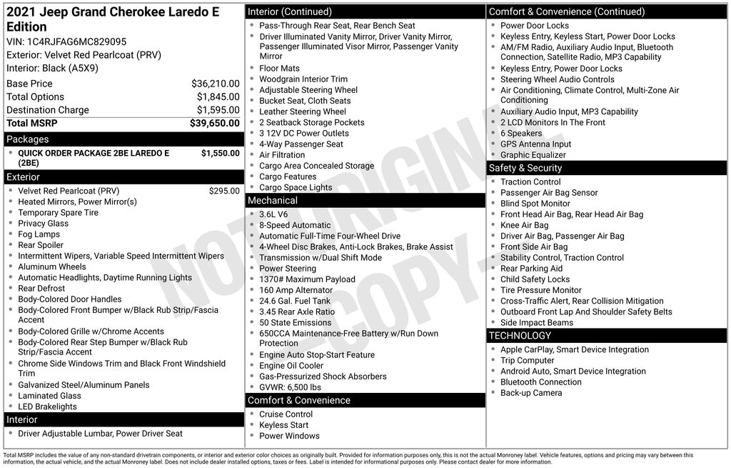 This 2021 Jeep Grand Cherokee Laredo E is now Certified Pre-Owned, giving you the peace of mind of a thorough multi-point inspection and a comprehensive warranty. With its impressive capabilities, impressive features, and Certified Pre-Owned status, this Grand Cherokee is an exceptional value that's sure to impress.