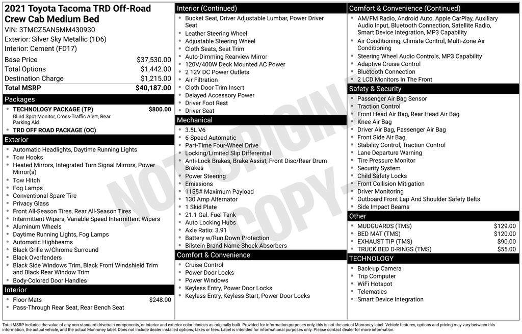 https://spanishford.dealerleads.com/cars/Used/2021/Toyota/Tacoma/TRD+Off-Road/171040622021 Toyota Tacoma TRD Off-Road