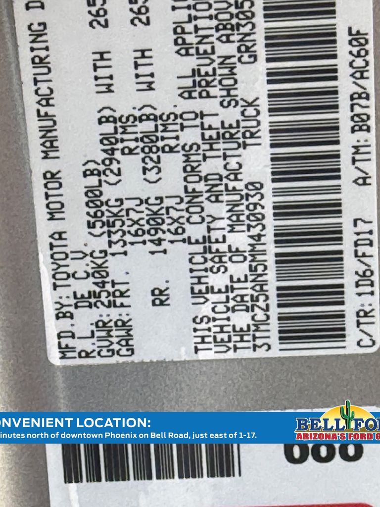 - VIN : 3TMCZ5AN5MM430930