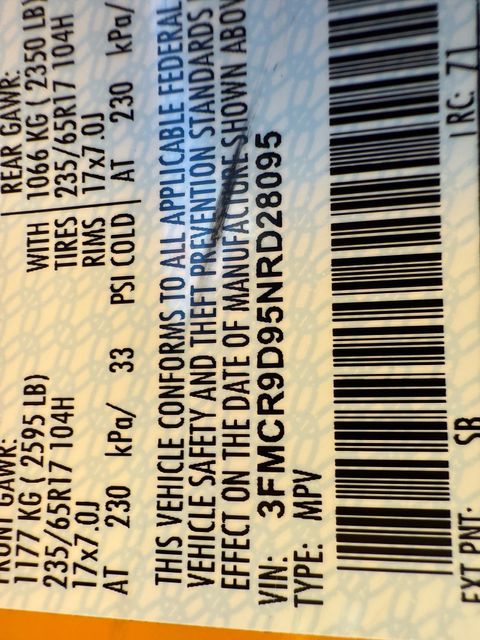 - VIN : 3FMCR9D95NRD28095