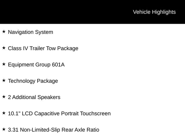 4WD, 10.1" LCD Capacitive Portrait Touchscreen, 2 Additional Speakers, 3.31 Non-Limited-Slip Rear Axle Ratio, Class IV Trailer Tow Package, Equipment Group 601A, Navigation System, Technology Package.