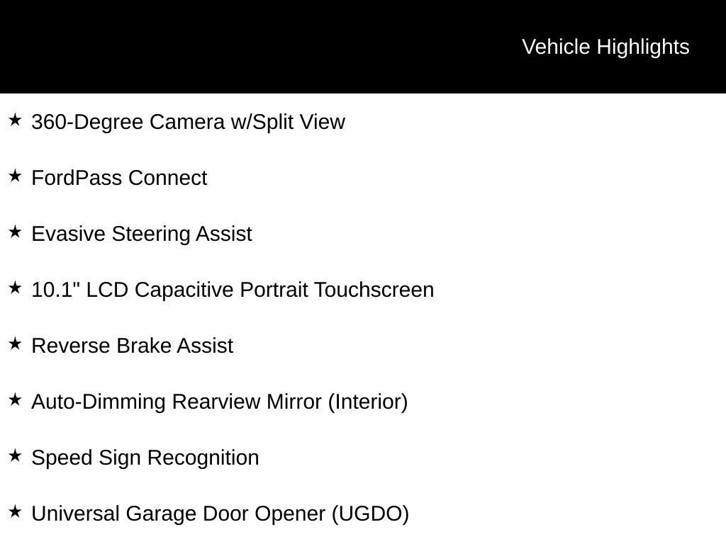 Safety is also a top priority, with features like Ford Co-Pilot360 Assist+, Evasive Steering Assist, and Reverse Brake Assist keeping you and your passengers protected. The 360-degree camera system and front parking sensors provide added confidence when maneuvering in tight spaces.