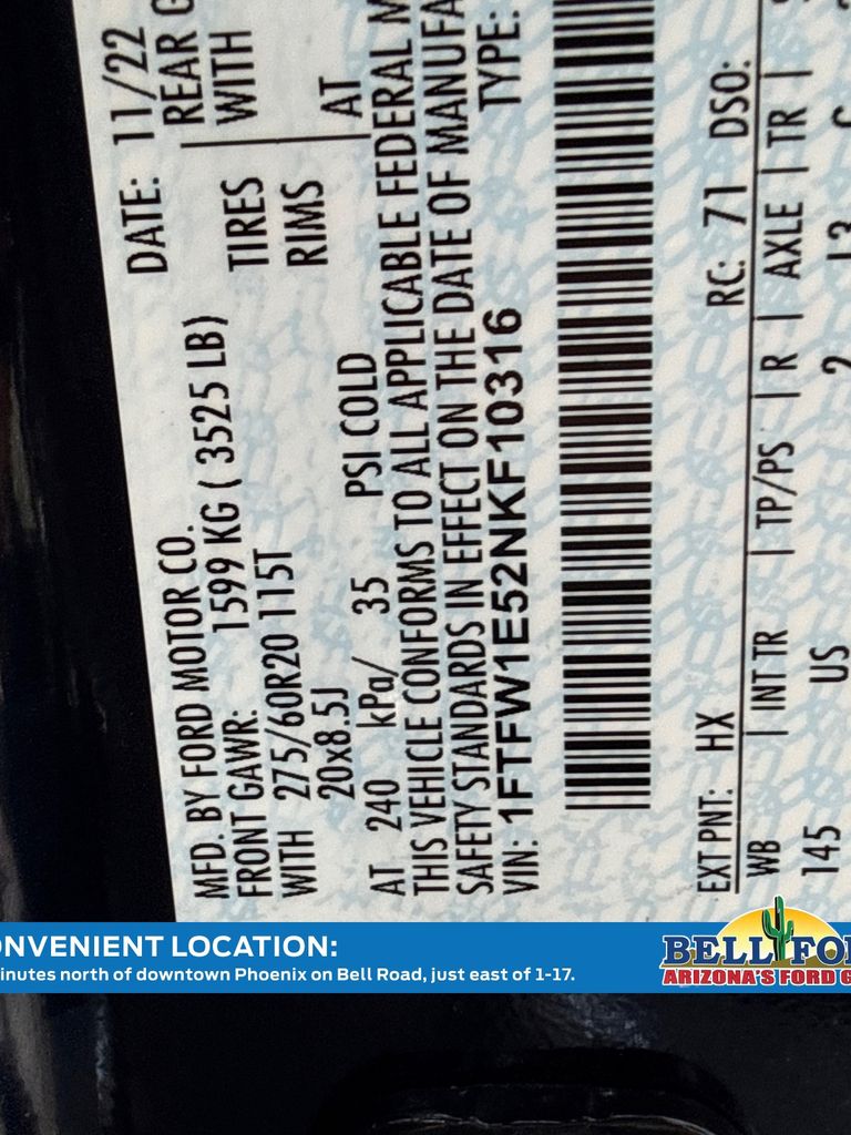 - VIN : 1FTFW1E52NKF10316
