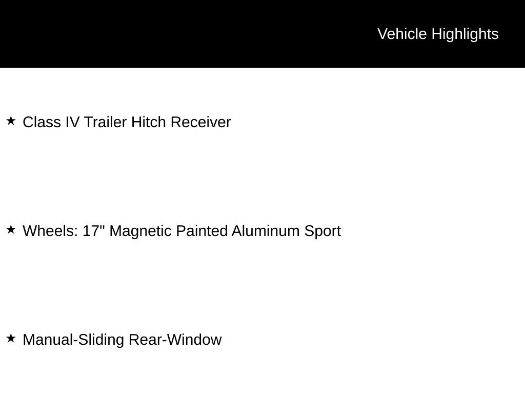 - Wheels: 17" Magnetic Painted Aluminum Sport