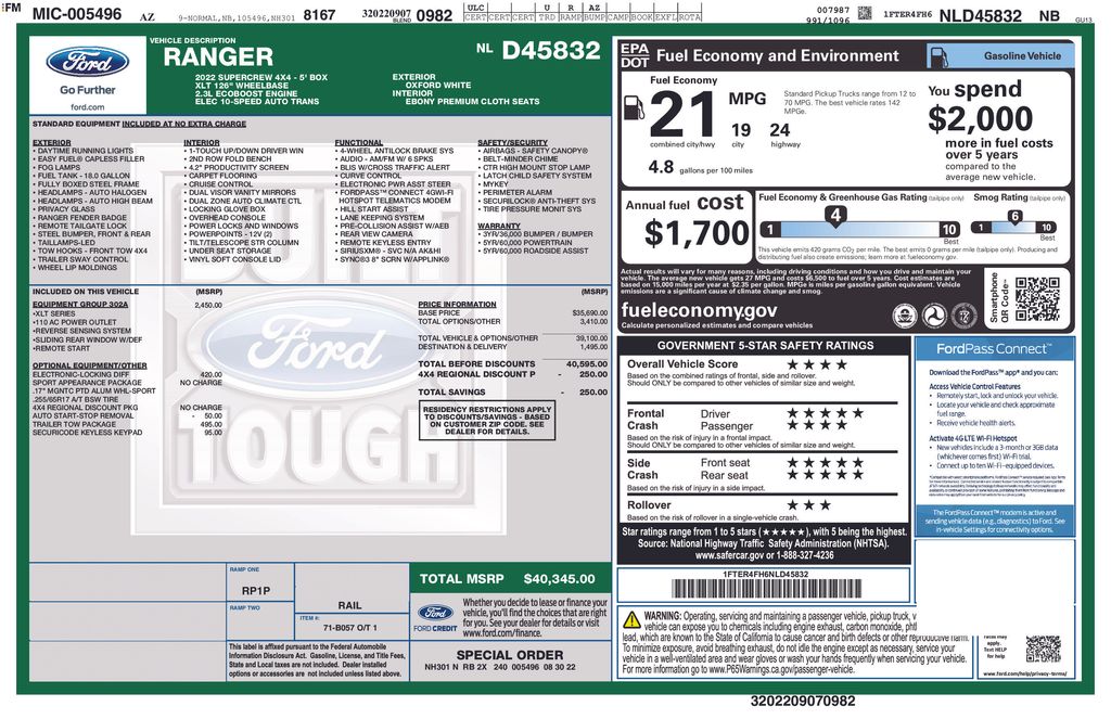 Whether you're looking for a capable work truck or a versatile adventure partner, this 2022 Ford Ranger XLT is ready to exceed your expectations. With its impressive fuel efficiency, advanced technology, and rugged good looks, this Ranger is a true standout in its class.
