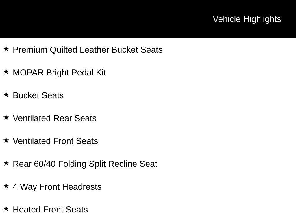 - Premium Quilted Leather Bucket Seats