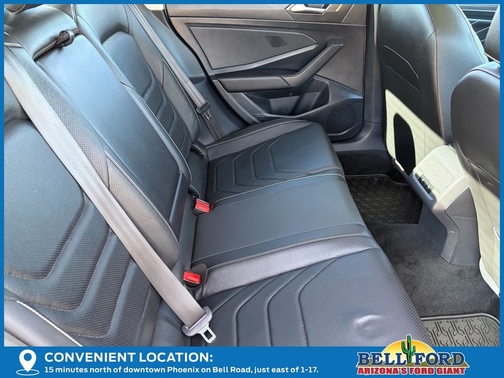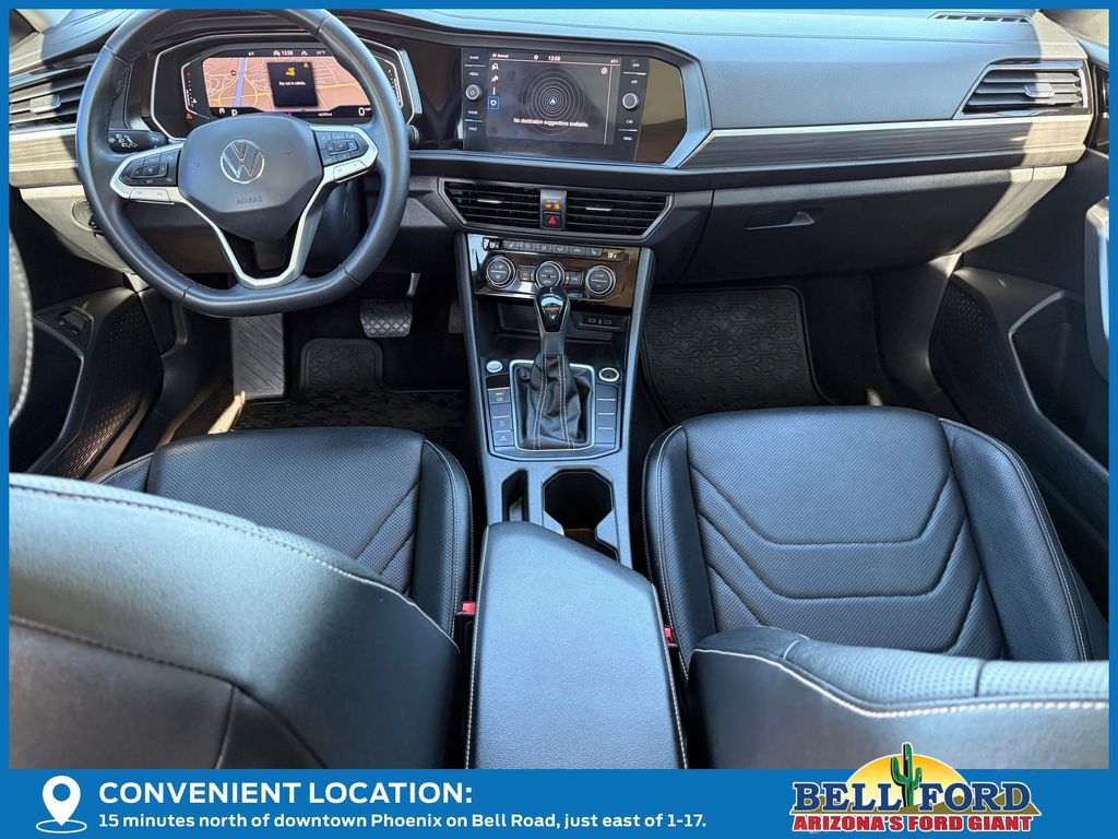 ** HERE AT BELL FORD ITS ALL ABOUT THE EXPERIENCE** Please visit us online at www.bellford.com This Volkswagen Jetta is equipped with the following options: Titan Black w/V-Tex Leatherette Seat Trim, Brake assist, Electronic Stability Control, Exterior Parking Camera Rear, Memory seat, Navigation System, Power driver seat, Power moonroof: Panoramic, Radio: MIB3 Discover Media w/8" Touchscreen Nav, Speed control, Speed-sensing steering, Traction control, Wheels: 17" 2-Tone Machined Alloy, 4-Wheel Disc Brakes, 9 Speakers, ABS brakes, Active Blind Spot Monitor, Air Conditioning, Alloy wheels, AM/FM radio: SiriusXM with 360L, Auto High-beam Headlights, Auto-dimming Rear-View mirror, Automatic temperature control, Bumpers: body-color, Delay-off headlights, Driver door bin, Driver vanity mirror, Dual front impact airbags, Dual front side impact airbags, Emergency communication system: Car-Net, Front anti-roll bar, Front Bucket Seats, Front Center Armrest, Front dual zone A/C, Front reading lights, Front wheel independent suspension, Fully automatic headlights, Heated & Actively Ventilated Fr Comfort Spt Seats, Heated door mirrors, Heated front seats, Heated rear seats, Heated steering wheel, Illuminated entry, Leather Shift Knob, Low tire pressure warning, Occupant sensing airbag, Outside temperature display, Overhead airbag, Overhead console, Panic alarm, Passenger door bin, Passenger vanity mirror, Power door mirrors, Power steering, Power windows, Radio data system, Rain sensing wipers, Rear anti-roll bar, Rear reading lights, Rear seat center armrest, Rear window defroster, Remote keyless entry, Security system, Split folding rear seat, Steering wheel mounted audio controls, Tachometer, Telescoping steering wheel, Tilt steering wheel, Trip computer, Turn signal indicator mirrors, Variably intermittent wipers, Ventilated front seats, and Vienna Leather Seat TriM.
