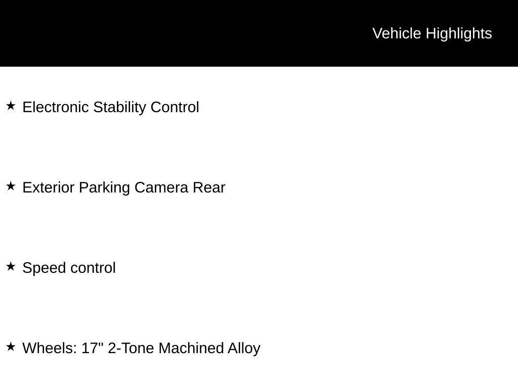Titan Black w/V-Tex Leatherette Seat Trim, Brake assist, Electronic Stability Control, Exterior Parking Camera Rear, Memory seat, Navigation System, Power driver seat, Power moonroof: Panoramic, Radio: MIB3 Discover Media w/8" Touchscreen Nav, Speed control, Speed-sensing steering, Traction control, Wheels: 17" 2-Tone Machined Alloy.