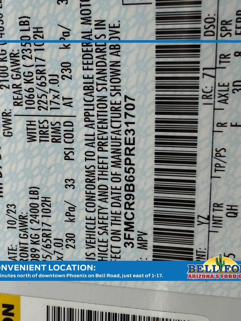 - VIN : 3FMCR9B65PRE31707