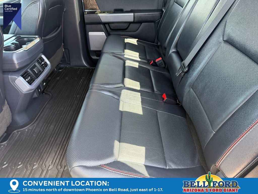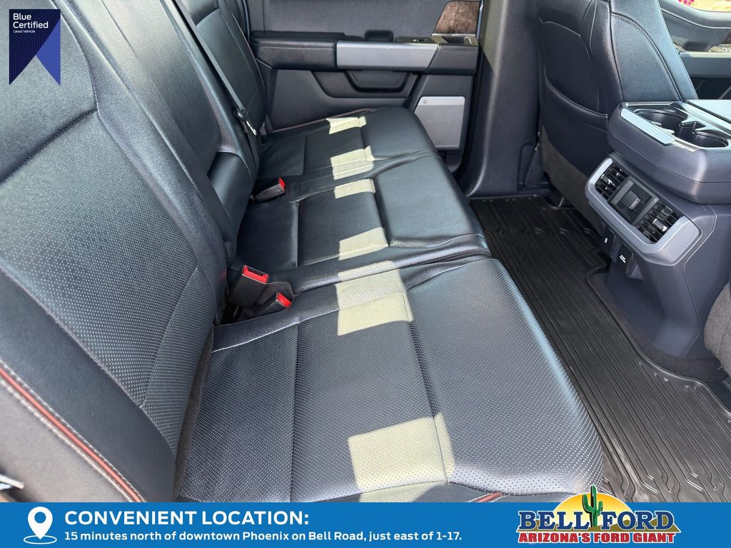 The interior of this F-150 Lariat is designed with your comfort and convenience in mind. Enjoy the premium sound of the B&O Sound System by Bang & Olufsen, as well as the convenience of the SYNC 4 infotainment system with enhanced voice recognition. Stay connected and in control with features like heated and ventilated front seats, a heated steering wheel, and a power driver's seat with memory settings.