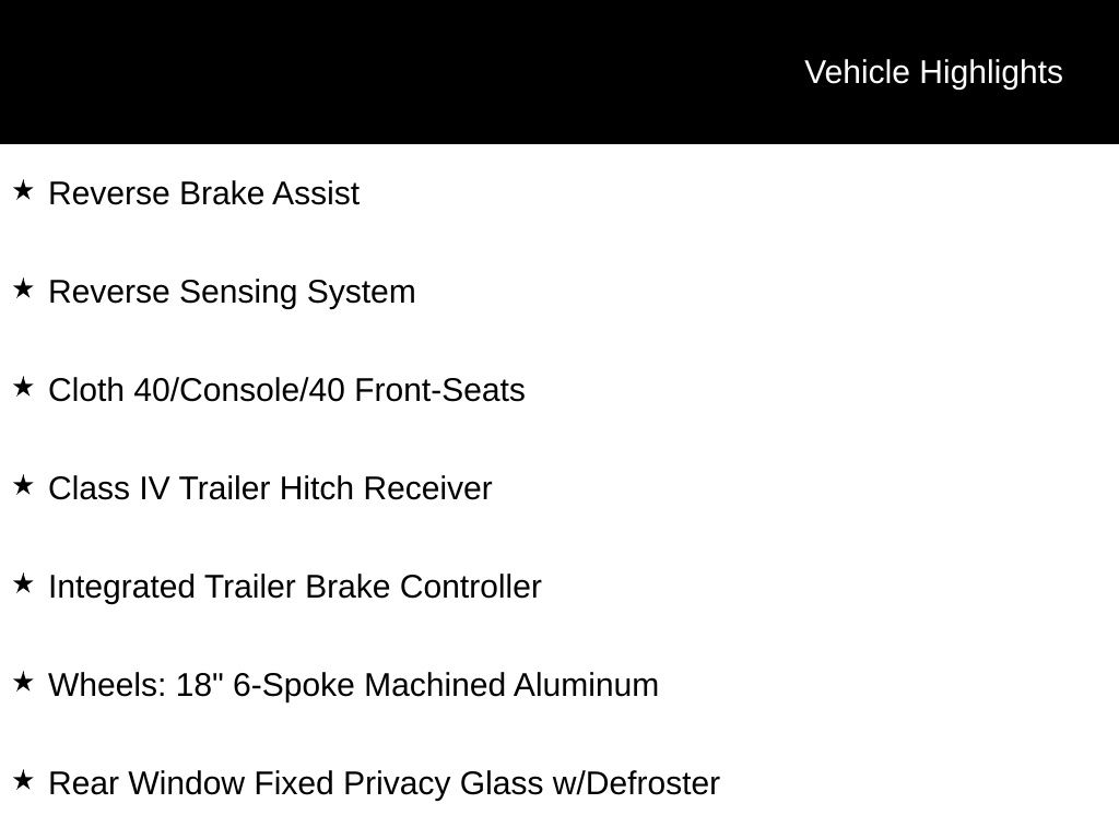 - Wheels: 18" 6-Spoke Machined Aluminum
