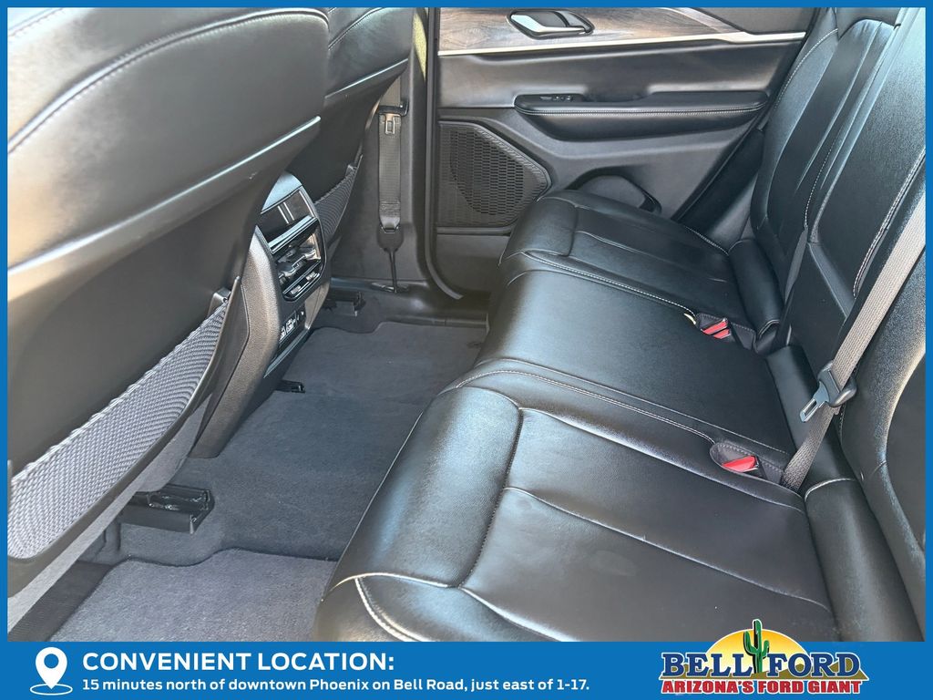 ** HERE AT BELL FORD ITS ALL ABOUT THE EXPERIENCE** Please visit us online at www.bellford.com This Jeep Grand Cherokee is equipped with the following options: Black Appearance Package (Gloss Black Exterior Accents, Molded In Color Black/Gloss Black Roof Rails, and Wheels: 20" x 8.5" Gloss Black Painted Aluminum), Quick Order Package 22E, Trailer Tow Prep Group (B) (DISC) (220 Amp Alternator, Automatic Headlamp Levelling System, Heavy-Duty Engine Cooling, Rear Load Levelling Suspension, and Trailer Hitch Zoom), 4WD, Dual-Pane Panoramic Sunroof, 3.45 Rear Axle Ratio, 4-Wheel Disc Brakes, 6 Speakers, ABS brakes, Active Noise Control System, Air Conditioning, Alloy wheels, AM/FM radio: SiriusXM with 360L, Anti-whiplash front head restraints, Audio memory, Auto High-beam Headlights, Automatic temperature control, Brake assist, Bumpers: body-color, Capri Leatherette Seats, Compass, Delay-off headlights, Driver door bin, Driver vanity mirror, Dual front impact airbags, Dual front side impact airbags, Electronic Stability Control, Emergency communication system, Four wheel independent suspension, Front anti-roll bar, Front Bucket Seats, Front Center Armrest w/Storage, Front dual zone A/C, Front fog lights, Front License Plate Bracket, Front reading lights, Fully automatic headlights, Garage door transmitter, Heated door mirrors, Heated front seats, Heated rear seats, Heated steering wheel, Illuminated entry, Knee airbag, Low tire pressure warning, Memory seat, Navigation System, Normal Duty Suspension, Occupant sensing airbag, Outside temperature display, Overhead airbag, Overhead console, Panic alarm, ParkView Rear Back-Up Camera, Passenger door bin, Passenger vanity mirror, Power door mirrors, Power driver seat, Power Liftgate, Power passenger seat, Power steering, Power windows, Radio data system, Radio: Uconnect 5 Nav w/10.1" Display, Rear anti-roll bar, Rear reading lights, Rear window defroster, Rear window wiper, Remote keyless entry, Security system, Speed control, Speed-Sensitive Wipers, Split folding rear seat, Spoiler, Steering wheel mounted audio controls, Tachometer, Telescoping steering wheel, Tilt steering wheel, Traction control, Trip computer, Turn signal indicator mirrors, Variably intermittent wipers, Voltmeter, and Wheels: 18" x 8" Fully Painted AluminuM.