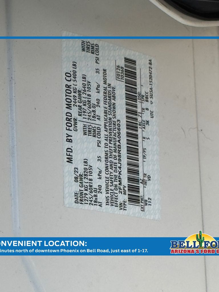 - VIN : 2FMPK4J98RBA06603