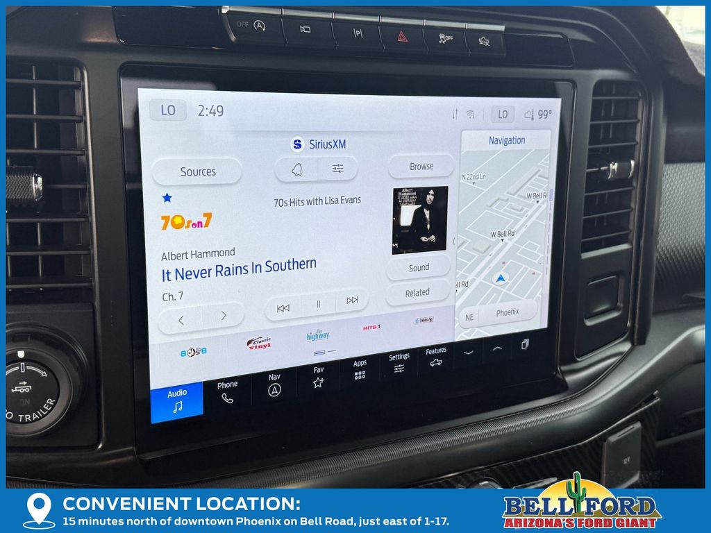 ** HERE AT BELL FORD ITS ALL ABOUT THE EXPERIENCE** Please visit us online at www.bellford.com This Ford F-150 is equipped with the following options: Equipment Group 801A Standard, 4WD, 14 Speakers, 17" Cast Aluminum Wheels, 4-Wheel Disc Brakes, ABS brakes, Adaptive suspension, Adjustable pedals, Air Conditioning, Alloy wheels, AM/FM radio: SiriusXM with 360L, Auto High-beam Headlights, Auto tilt-away steering wheel, Auto-dimming door mirrors, Auto-dimming Rear-View mirror, Automatic temperature control, Brake assist, Bumpers: body-color, Compass, Delay-off headlights, Driver door bin, Driver vanity mirror, Dual front impact airbags, Dual front side impact airbags, Electronic Locking w/4.10 Axle Ratio, Electronic Stability Control, Emergency communication system: SYNC 4 911 Assist, Front anti-roll bar, Front Bucket Seats, Front Center Armrest, Front dual zone A/C, Front fog lights, Front License Plate Bracket, Front reading lights, Front wheel independent suspension, Fully automatic headlights, Garage door transmitter, Heads-Up Display, Heated door mirrors, Heated front seats, Heated rear seats, Heated steering wheel, Illuminated entry, Lane Departure Warning System, Leather Trim Seats, Low tire pressure warning, Memory seat, Navigation system: Connected Navigation, Occupant sensing airbag, Outside temperature display, Overhead airbag, Overhead console, Panic alarm, Passenger door bin, Passenger vanity mirror, Pedal memory, Power door mirrors, Power driver seat, Power passenger seat, Power steering, Power windows, Radio data system, Radio: B&O Unleashed Sound System by Bang & Olufsen, Rain sensing wipers, Rear reading lights, Rear step bumper, Rear window defroster, Remote keyless entry, Security system, Speed control, Speed-sensing steering, Split folding rear seat, Steering wheel memory, Steering wheel mounted audio controls, SYNC 4 w/Enhanced Voice Recognition, Tachometer, Telescoping steering wheel, Tilt steering wheel, Traction control, Trip computer, Turn signal indicator mirrors, Twin Panel Moonroof, Variably intermittent wipers, and Ventilated front seatS.