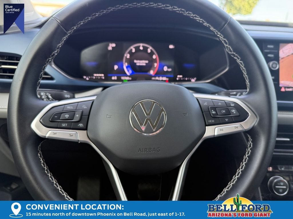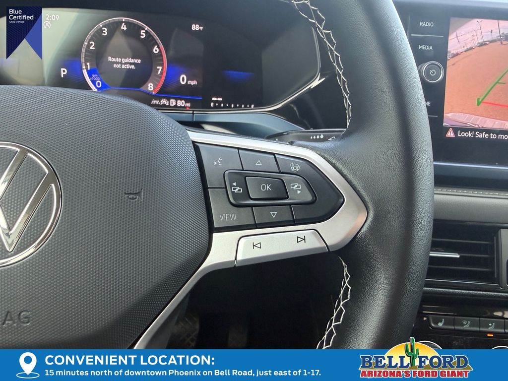 ** HERE AT BELL FORD ITS ALL ABOUT THE EXPERIENCE** Please visit us online at www.bellford.com This Volkswagen Taos is equipped with the following options: 3.23 Axle Ratio, 4-Wheel Disc Brakes, 6 Speakers, ABS brakes, Active Blind Spot Monitor, Air Conditioning, Alloy wheels, AM/FM radio: SiriusXM with 360L, Auto High-beam Headlights, Automatic temperature control, Brake assist, Bumpers: body-color, CloudTex & Cloth Seating Surfaces, Compass, Delay-off headlights, Driver door bin, Driver vanity mirror, Dual front impact airbags, Dual front side impact airbags, Electronic Stability Control, Emergency communication system: VW Car-Net Safe & Secure 5-year, Exterior Parking Camera Rear, Front anti-roll bar, Front Bucket Seats, Front Center Armrest, Front dual zone A/C, Front reading lights, Front Strut Rear Torsion Beam Suspension, Front wheel independent suspension, Fully automatic headlights, Heated door mirrors, Heated Front Bucket Seats, Heated front seats, Heated steering wheel, Illuminated entry, Leather Shift Knob, Low tire pressure warning, Occupant sensing airbag, Outside temperature display, Overhead airbag, Overhead console, Panic alarm, Passenger door bin, Passenger vanity mirror, Power door mirrors, Power driver seat, Power steering, Power windows, Radio data system, Radio: MIB3 Composition Media AM/FM/HD, Rain sensing wipers, Rear anti-roll bar, Rear seat center armrest, Rear window defroster, Rear window wiper, Remote keyless entry, Roof rack: rails only, Security system, Speed control, Speed-sensing steering, Split folding rear seat, Spoiler, Steering wheel mounted audio controls, Tachometer, Telescoping steering wheel, Tilt steering wheel, Traction control, Trip computer, Variably intermittent wipers, and Wheels: 18" 2-Tone Machined AlloY.