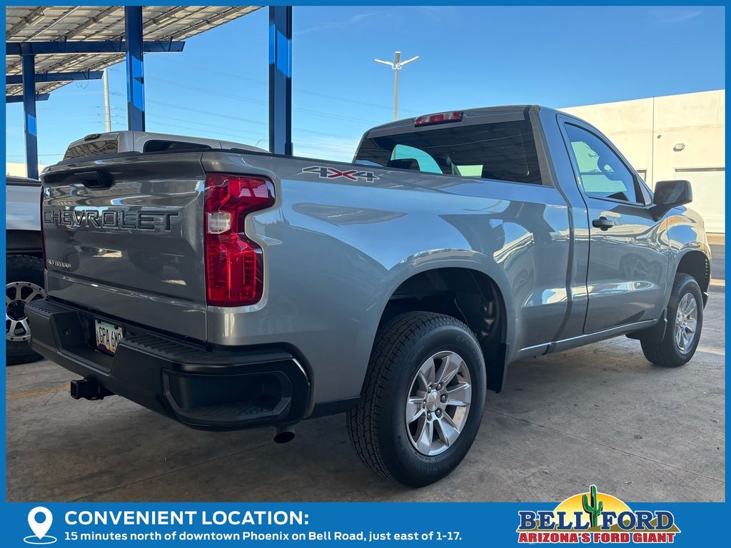 ** HERE AT BELL FORD ITS ALL ABOUT THE EXPERIENCE** Please visit us online at www.bellford.com This Chevrolet Silverado 1500 is equipped with the following options: Preferred Equipment Group 1WT (3.5" Monochromatic Display Driver Info Center, 4-Way Manual Driver Seat Adjuster, Black (Semi-Gloss) Front Bumper, Black (Semi-Gloss) Rear Bumper, Bluetooth For Phone, Electronic Cruise Control, Front Frame-Mounted Black Recovery Hooks, HD Rear Vision Camera, Heated Power-Adjustable Outside Mirrors, Inside Rear-View Mirror w/Tilt, Locking Tailgate, Manual Tailgate Function w/No EZ Lift, Manual Tilt Wheel Steering Column, OnStar Services Capable, Power Front Windows w/Driver Express Up/Down, Power Front Windows w/Passenger Express Down, Remote Keyless Entry, Rubberized-Vinyl Floor Covering, SiriusXM Delete, Solar Absorbing Tinted Glass, Standard Tailgate, Teen Driver, Tire Pressure Monitoring System, and Wi-Fi Hot Spot Capable), Standard Suspension Package, Trailering Package (Hitch Guidance), 8-Speed Automatic, 4WD, Jet Black Vinyl, 2 Speakers, 2-Speaker Audio System, 220 Amp Alternator, 3.42 Rear Axle Ratio, 4-Wheel Disc Brakes, 40/20/40 Front Split Bench Seat, ABS brakes, Air Conditioning, Apple CarPlay/Android Auto, Auto High-beam Headlights, Automatic Emergency Braking, Brake assist, Compass, Delay-off headlights, Driver door bin, Dual front impact airbags, Dual front side impact airbags, Electronic Stability Control, Emergency communication system: OnStar, Following Distance Indicator, Forward Collision Alert, Front anti-roll bar, Front Center Armrest w/Storage, Front Pedestrian Braking, Front reading lights, Front wheel independent suspension, Fully automatic headlights, Heated door mirrors, Illuminated entry, Integrated Trailer Brake Controller, IntelliBeam Automatic High Beam On/Off, Lane Keep Assist w/Lane Departure Warning, Low tire pressure warning, Occupant sensing airbag, Outside temperature display, Overhead airbag, Overhead console, Panic alarm, Passenger door bin, Passenger vanity mirror, Power door mirrors, Power steering, Power windows, Premium audio system: Chevrolet Infotainment 3, Radio data system, Radio: Chevrolet Infotainment 3 System, Rear reading lights, Rear step bumper, Remote keyless entry, Speed control, Speed-sensing steering, Tachometer, Tilt steering wheel, Traction control, Trip computer, Variably intermittent wipers, Vinyl Seat Trim, Voltmeter, Wheels: 17" x 8" Bright Silver Painted Aluminum, and Wheels: 17" x 8" Ultra Silver Painted SteeL.