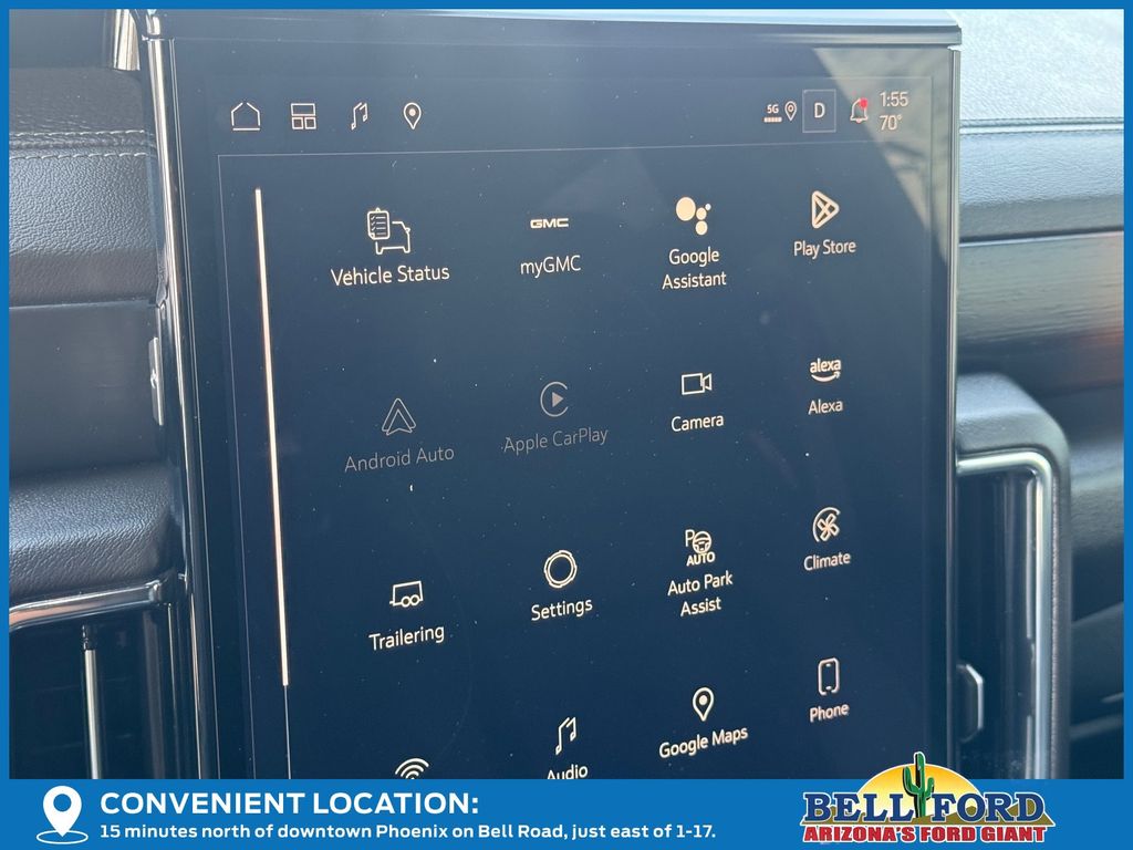The Yukon Denali's premium interior is a true sanctuary, featuring luxurious perforated leather seating, heated and ventilated front seats, and a 15-inch head-up display that keeps important information right in your line of sight. The Bose 10-speaker surround sound system and 16.8-inch premium infotainment system provide an immersive audio experience, while the GMC Connected Navigation system ensures you'll always arrive at your destination with ease.