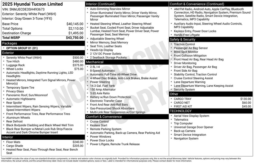 White Pearl 2025 Hyundai Tucson Limited AWD 8-Speed Automatic with SHIFTRONIC 2.5L I4 DGI DOHC 16V LEV3-SULEV30 187hp